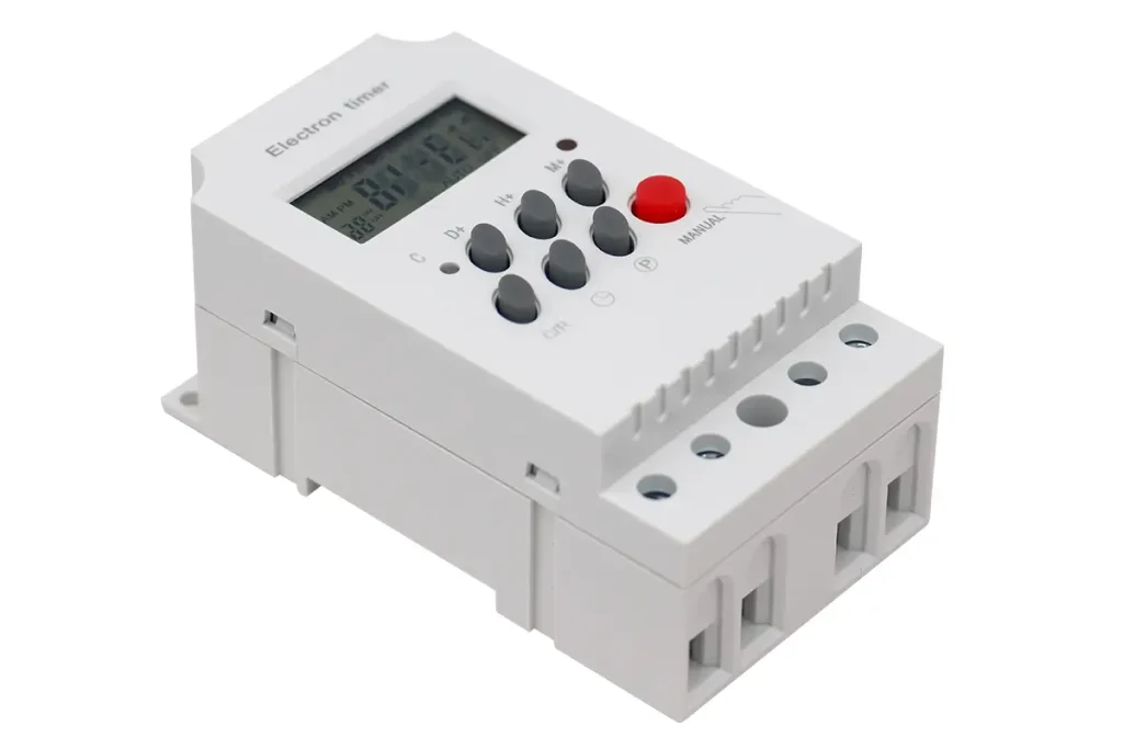 The KG316T Time Control Switch is a programmable device that allows automatic on/off control of electrical equipment according to set schedules. It is ideal for energy saving, automation, and timed operations in residential and industrial applications.